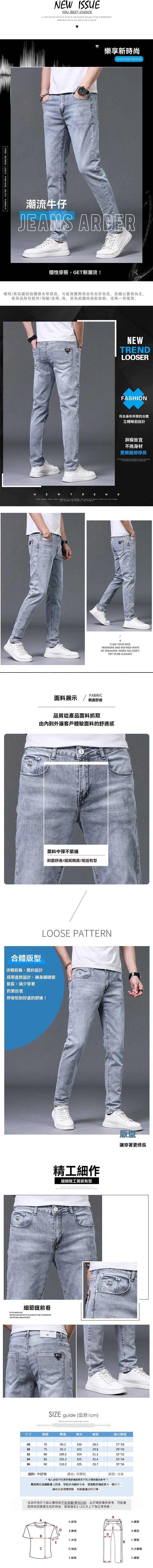 丹寧 水洗刷舊 淺色系 休閒褲 牛仔長褲