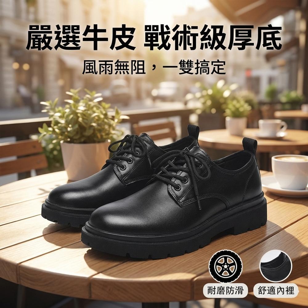 ☑️想找一雙通勤也能安心走的男鞋嗎?這款真牛皮厚底防滑鞋,抓地力大底提升濕地穩定度,
