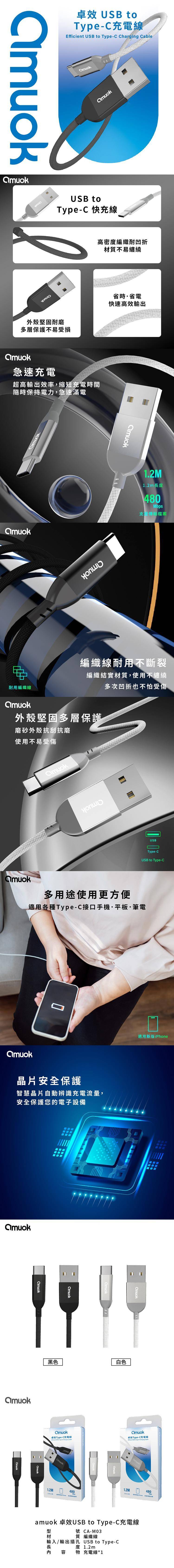 ☑️USB to Type-C 編織充電線採耐用尼龍線材設計,線身柔韌不易打結,